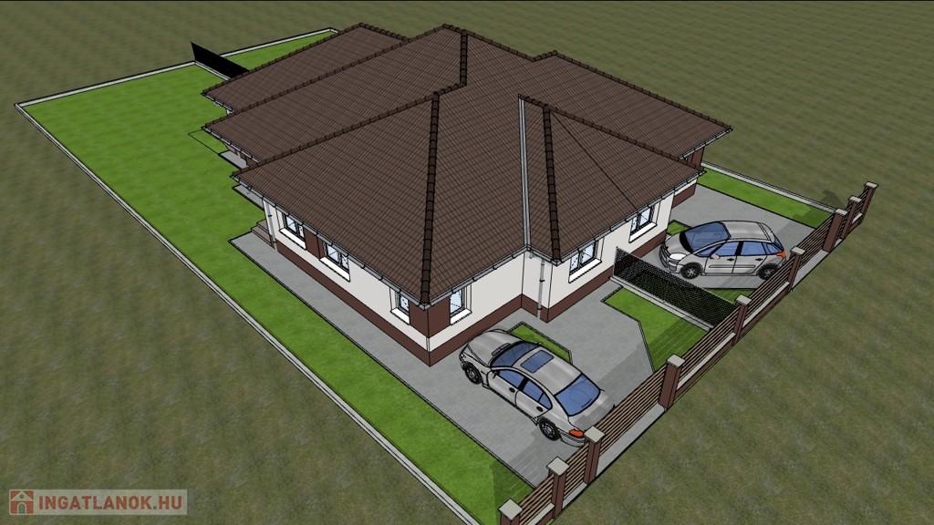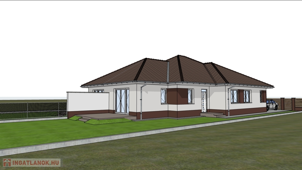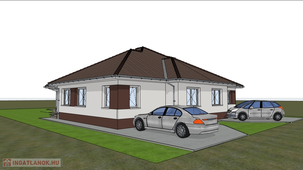 Az ikerház felek azonos nagyságúak, 122 m2 -esek (lakóterület:105 m2 + terasz:16 m2)nappali+4 szoba elrendezésűek,mely 400 m2 nagyságú saját